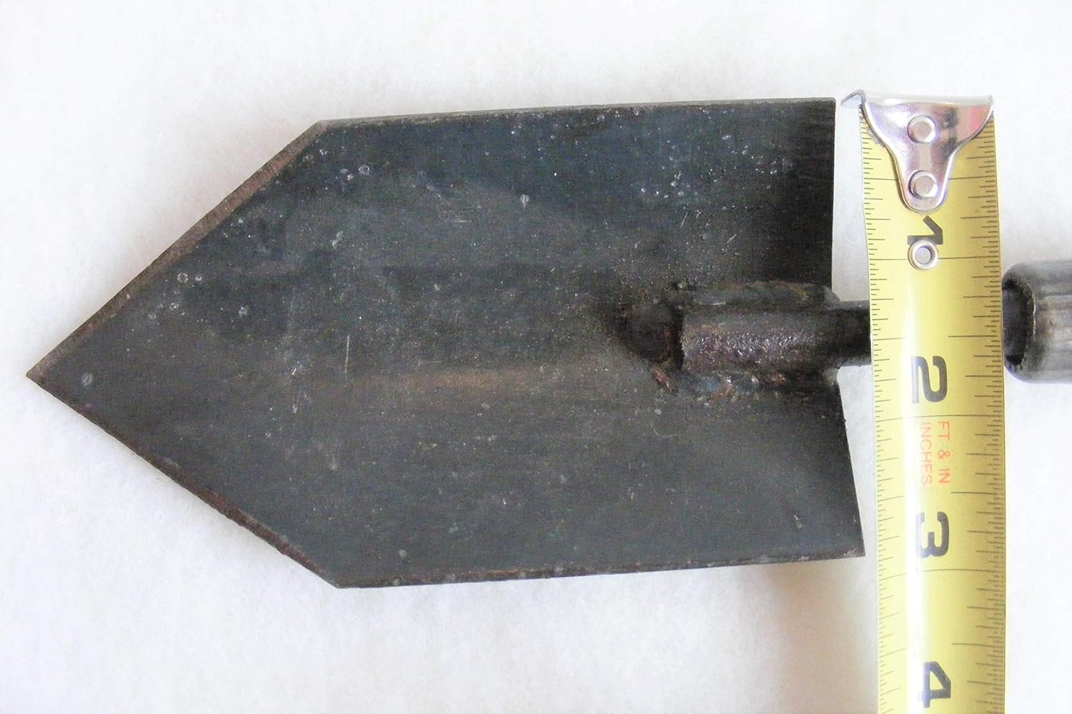 A useful tool that has a heavy metal blade. The plastic D shaped handle is riveted to the main wood shaft to be comfortable and lighter weight than a steel handle as well as being warmer to the touch. Far end of the wood handle has a metal sleeve over the wood for added strength. A 3/8 inch steel shaft is welded on the blade and extends into the handle held in place by a rivet. Blade end is beveled and can be sharpened as needed.