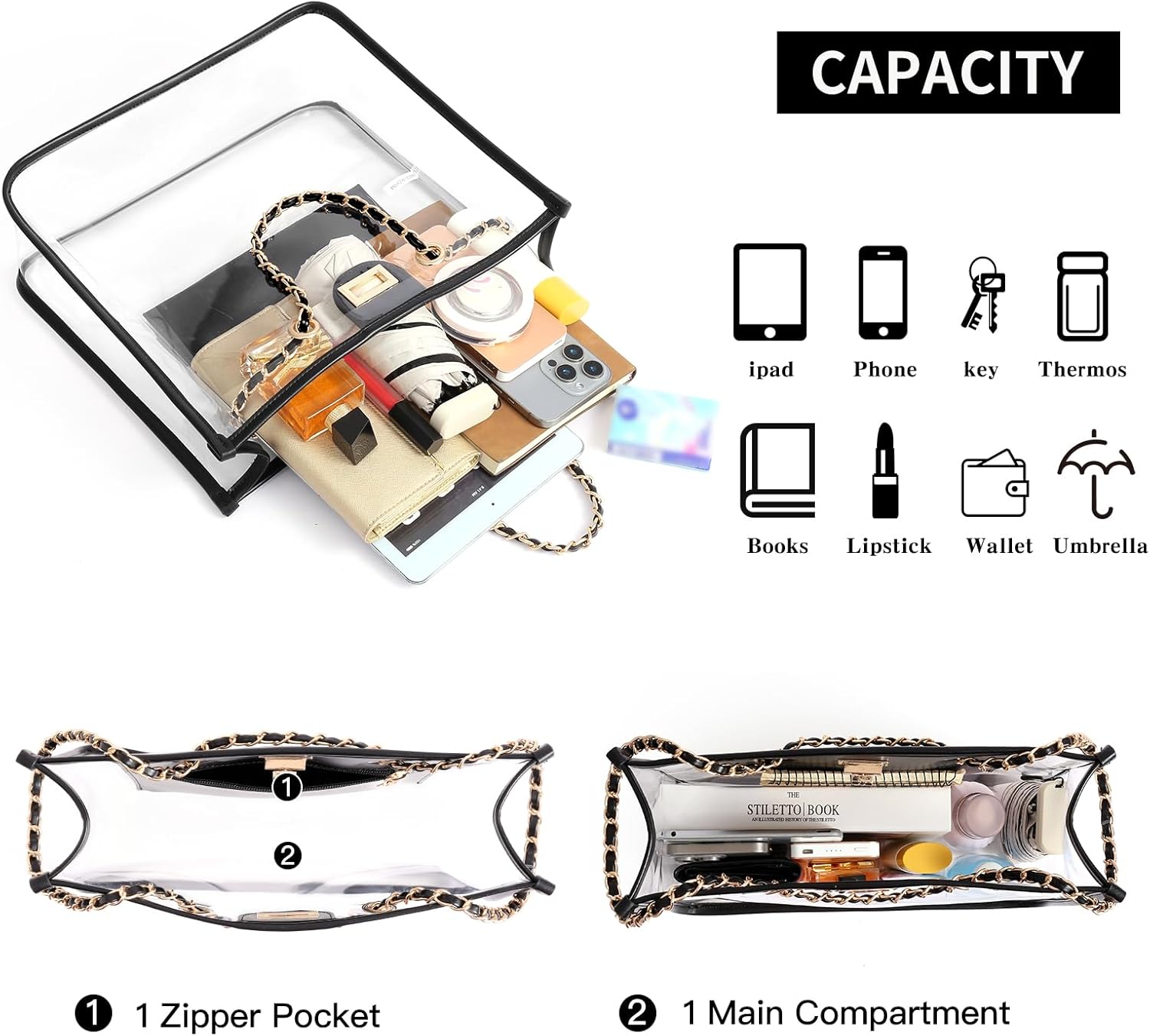 GOIACII Clear Tote Bag for Stadium Events Women Shoulder Handbag Purse with Chain Strap for Gym Beach Concert