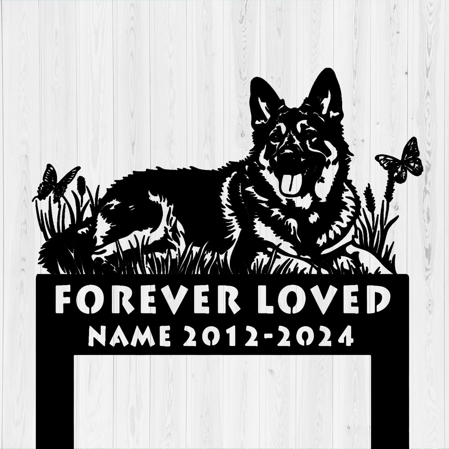 Honor the gentle presence of your loyal friend with our Personalized German Shepherd Grave Marker. Featuring a serene German Shepherd lying down, this design captures their calm and loving nature. Available in sizes from 8 to 24 inches, it’s a beautiful remembrance stake for gardens, gravesides, or special memorial spaces. A meaningful tribute to cherish the memory of your beloved German Shepherd.