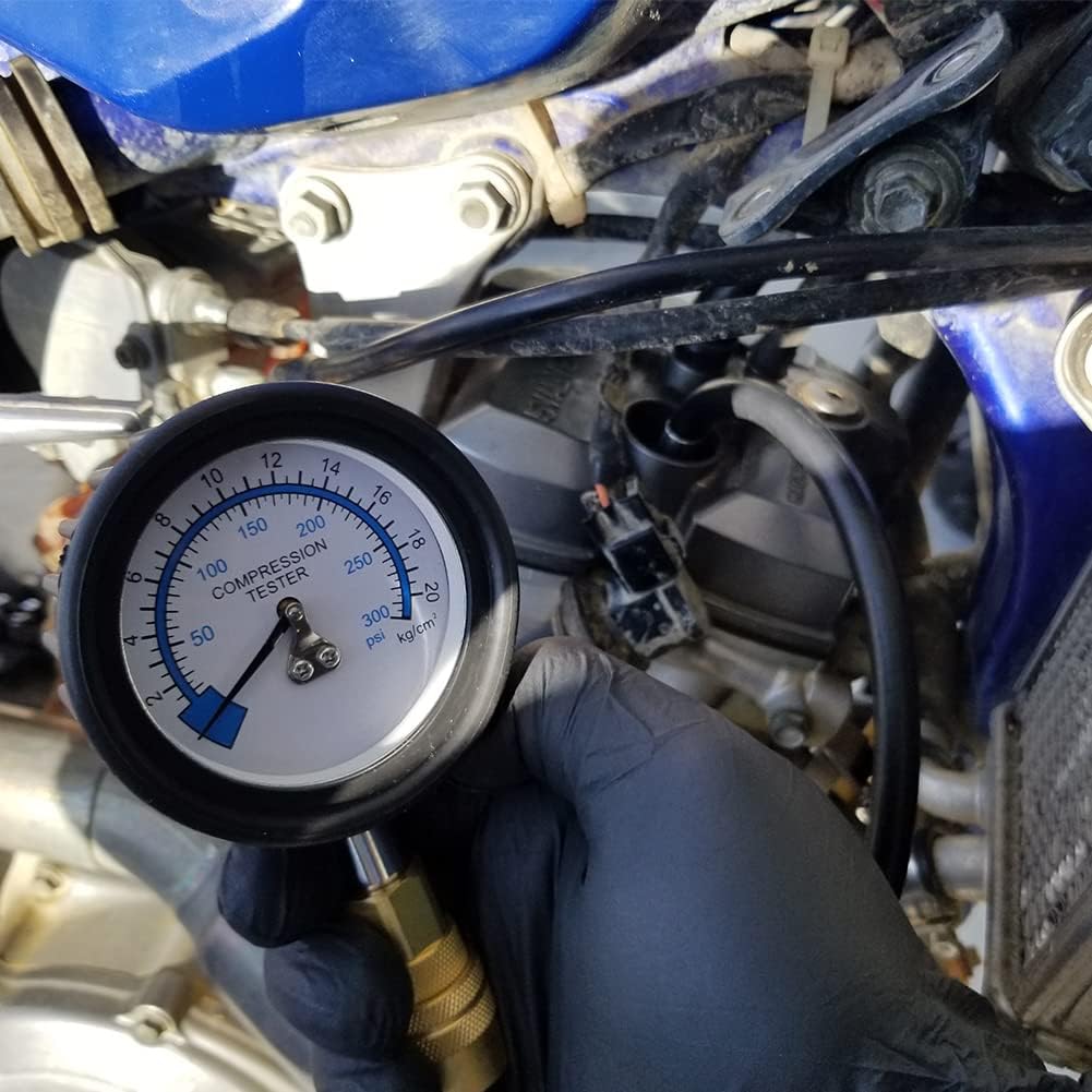 You can have the hottest motorcycle, perfect ignition timing, clean carburetor, and fresh gas, but without good compression... that engine is not going to run. Diagnose your engine quickly and easily with Pit Posse's compression gauge tester kit that includes: Shock resistant gauge that reads 0 to 300 psi with a bleed valve Flexible hose with 10, 12, 14, and 18mm spark plugs adaptersStraight and angled extension quick change tubesQuick connecting coupler Pit Posse takes pride in high-quality manufacturing tools from premium materials and exceptional craftsmanship. This kit is backed up by Pit Posse's 20 years of flawless reputation! ADD TO CART AND DIAGNOSE YOUR ENGINE EASILY WITHOUT ANY TEARDOWN NEEDED