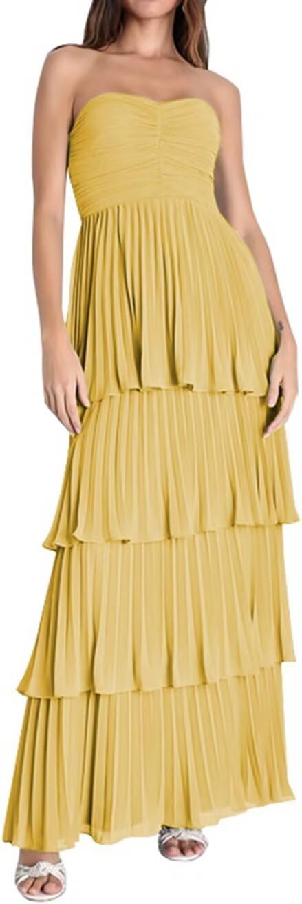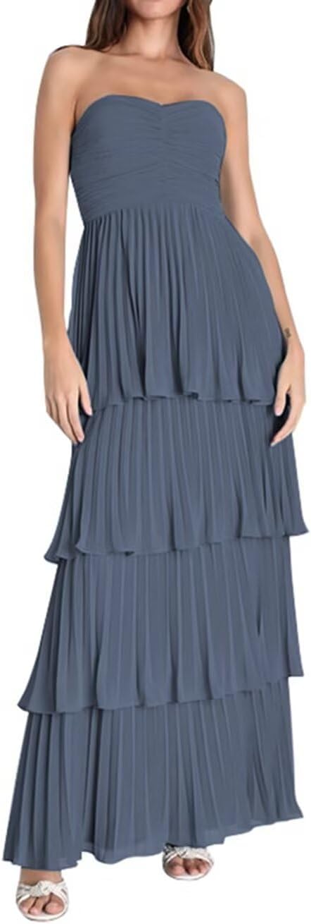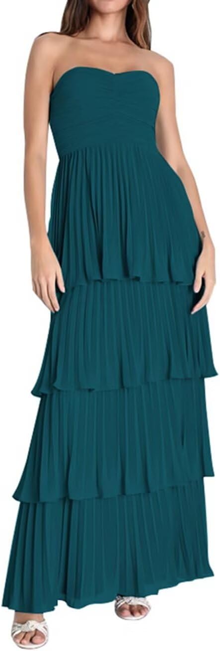 【Description】Fabric:ChiffonLength:Floor length.Feature:Strapless Chiffon Prom Dresses for Women Ruffles Tiered Evening Gowns Long Sweetheart Formal Bridesmaid Party Dress.